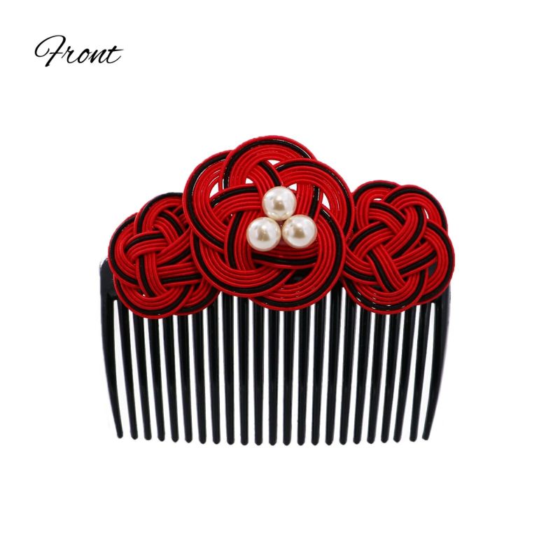 4. 【Prices down3】水引きコーム 髪飾り 「赤×黒色」 普段使い カジュアル 振袖 ヘアアクセサリー (KK-8) 日本製 【メール便不可】ss2512wkk35