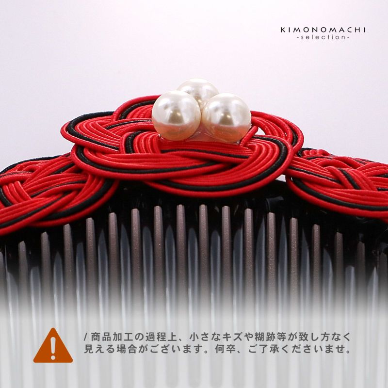 水引き飾りのオシャレな髪飾りコーム 【Prices down3】水引きコーム 髪飾り 「赤×黒色」 普段使い カジュアル 振袖 ヘアアクセサリー (KK-8) 日本製 【メール便不可】ss2512wkk35