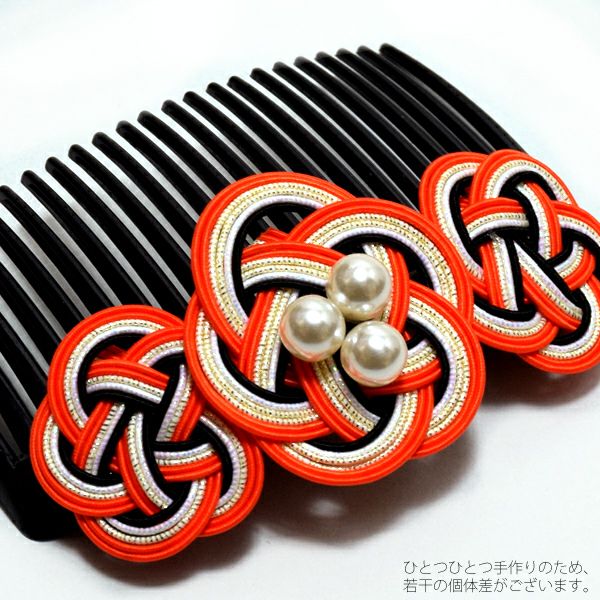4. (卒業式応援75%SALE 3/5迄)【Prices down3】水引きコーム髪飾り「オレンジ×ゴールド」水引き 和装髪飾り 普段使い 振袖 ヘアアクセサリー (KK-9)【メール便不可】ss2509wkk10