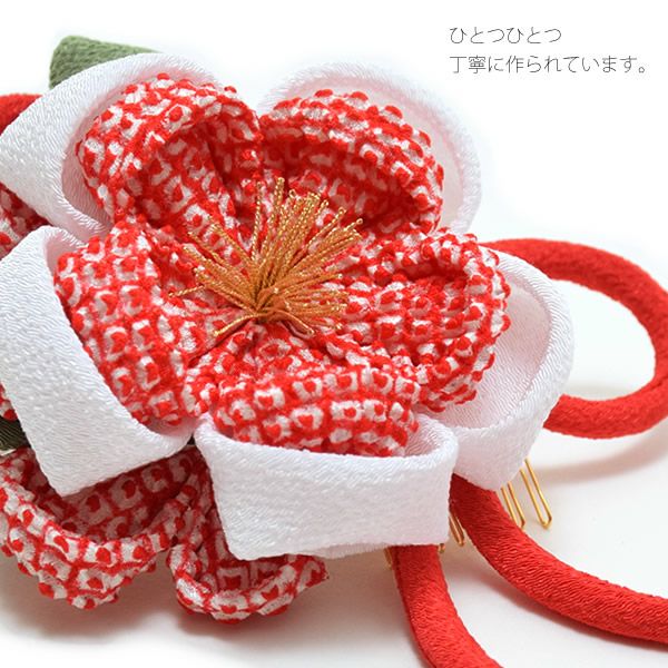 (卒業式応援75%SALE 2/19迄)【Prices down5】振袖髪飾り「赤色 絞り、つまみのお花」振袖 成人式 前撮り フラワーコーム お花髪飾り 【メール便不可】ss2512wkk35