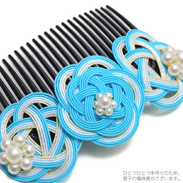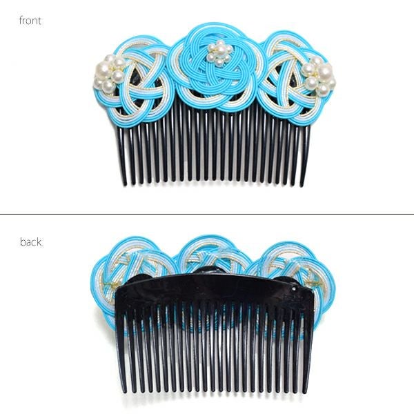 (卒業式応援75%SALE 2/19迄)【Prices down3】水引き髪飾り「水色×ラメ」コーム髪飾り 櫛 ヘアアクセサリー KK-42【メール便不可】ss2509wkk10