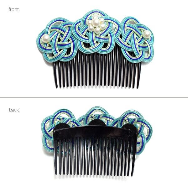 (卒業式応援75%SALE 2/19迄)【Prices down2】水引き髪飾り「グリーン×ブルー」コーム髪飾り 櫛 ヘアアクセサリー KK-44【メール便不可】ss2509wkk10
