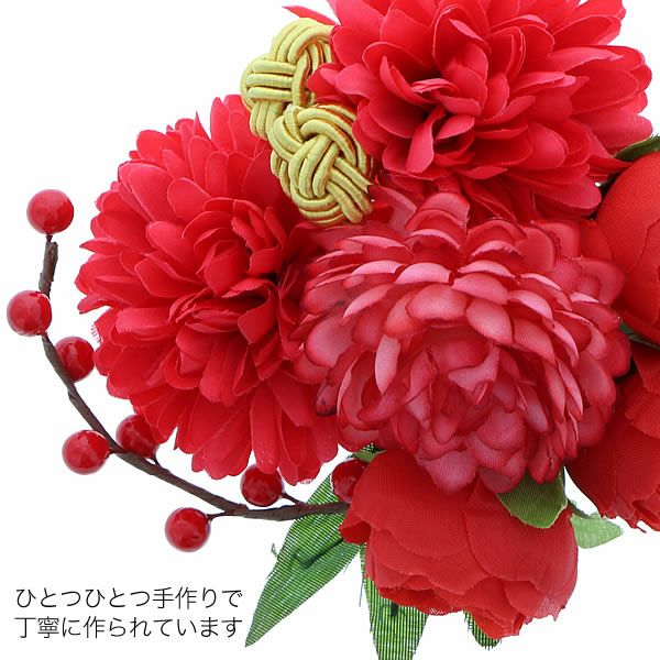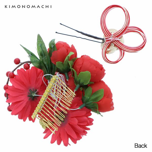 (卒業式応援75%SALE 2/19迄)【Prices down5】振袖髪飾り2点セット「赤色 お花と南天、水引き」お花髪飾り コーム髪飾り 華やか 水引き飾り 成人式の振袖、卒業式の袴にも (HA-351)【メール便不可】ss2512wkk35