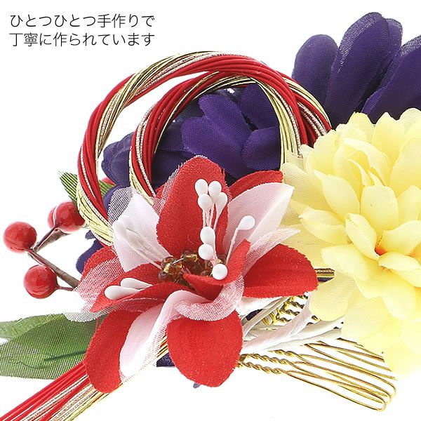 (卒業式応援75%SALE 2/19迄)【Prices down3】振袖髪飾り「お花と南天、水引き、鈴飾り」お花髪飾り コーム髪飾り 華やか 水引き飾り 成人式の振袖、卒業式の袴にも (HA-358)【メール便不可】ss2512wkk35