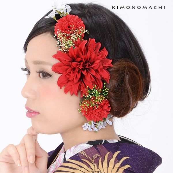 (卒業式応援75%SALE 2/19迄)【Prices down4】振袖髪飾り「赤色系のお花」お花髪飾り 成人式の振袖、卒業式の袴にも 前撮り、成人式、結婚式の振袖に お花カチューシャ (R11)【メール便不可】ss2512wkk50