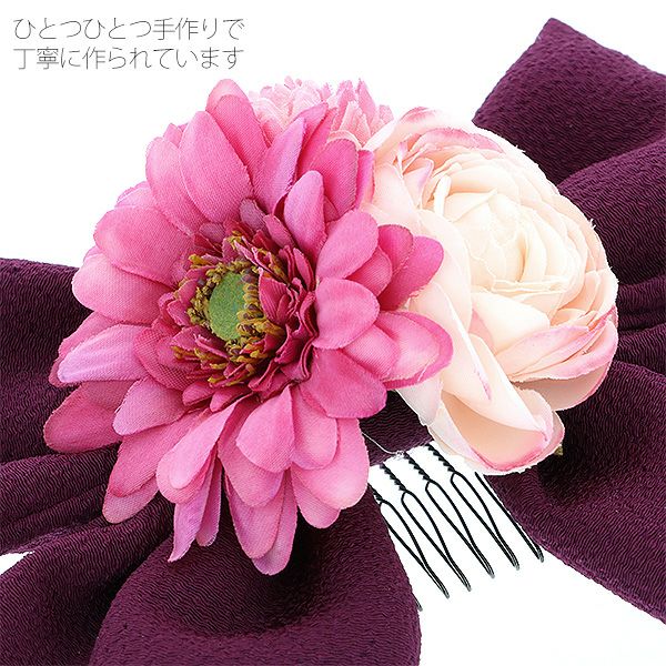 (卒業式応援75%SALE 2/19迄)【Prices down2】リボン髪飾り「紫色のお花、リボン」振袖髪飾り 成人式の振袖、卒業式の袴にも 前撮り、成人式、結婚式の振袖に 華やか お花髪飾り (6408-4)【メール便不可】ss2512wkk35