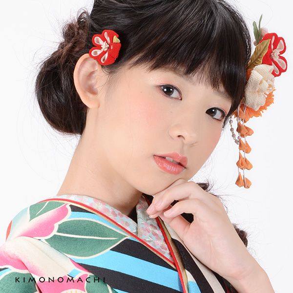 (卒業式応援75%SALE 2/19迄)【Prices down5】振袖髪飾り2点セット「オレンジのお花、赤橙、白色のつまみのお花」つまみ細工かんざし 成人式の振袖、卒業式の袴にも 前撮り、成人式、結婚式の振袖に お花髪飾り (No.1650)【メール便不可】ss2512wkk35