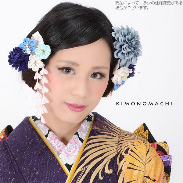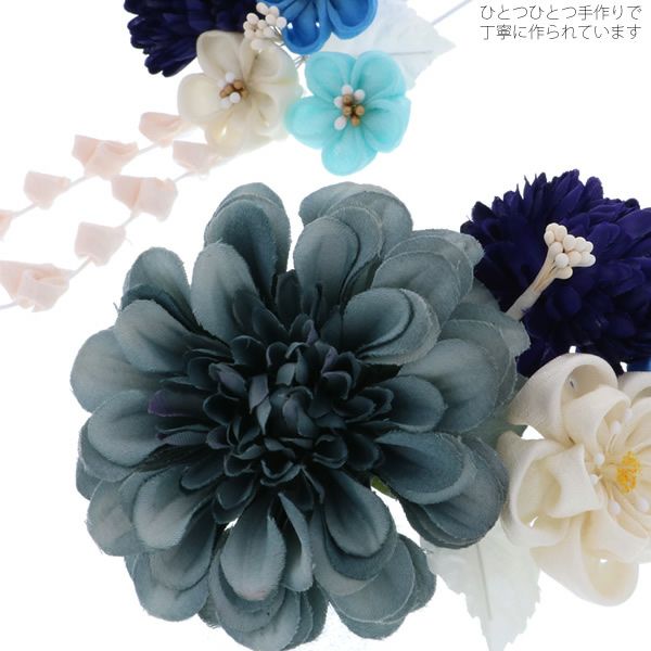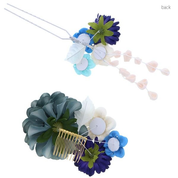 (卒業式応援75%SALE 2/19迄)【Prices down4】振袖髪飾り2点セット「ブルー系のお花、つまみのお花」つまみ細工かんざし 成人式の振袖、卒業式の袴にも 前撮り、成人式、結婚式の振袖に お花髪飾り (No.1737)【メール便不可】ss2512wkk40