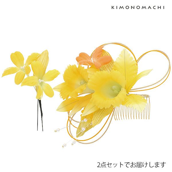 (卒業式応援75%SALE 2/19迄)【Prices down5】振袖髪飾り2点セット「黄色のお花」フラワーコーム 成人式の振袖、卒業式の袴にも 前撮り、成人式、結婚式の振袖に 振袖髪飾り お花髪飾り (No.3802)【メール便不可】ss2512wkk35