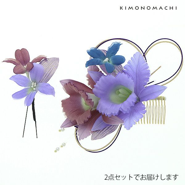 (卒業式応援75%SALE 2/19迄)【Prices down5】振袖髪飾り2点セット「パープルのお花」フラワーコーム 成人式の振袖、卒業式の袴にも 前撮り、成人式、結婚式の振袖に 振袖髪飾り お花髪飾り (No.3802)【メール便不可】ss2512wkk35