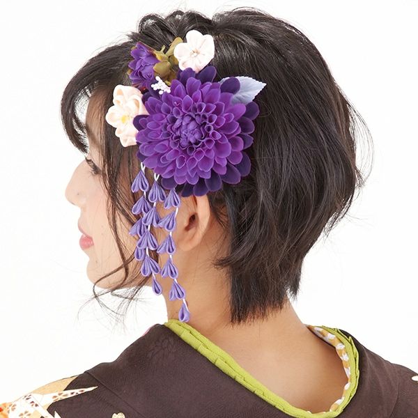 (卒業式応援75%SALE 2/19迄)【Prices down4】振袖髪飾り2点セット「青紫色のお花、下がり飾り」つまみ細工髪飾り 振袖髪飾り 華やか髪飾り コーム お花髪飾り (1798)【メール便不可】ss2512wkk15