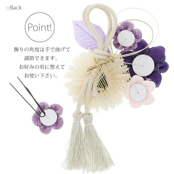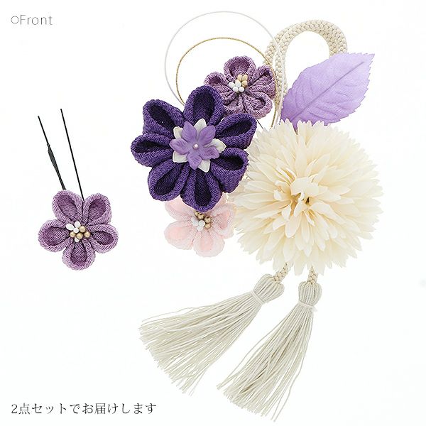 (卒業式応援75%SALE 2/19迄)振袖髪飾り2点セット「青紫色 お花とつまみのお花、房飾り」つまみ細工髪飾り 振袖髪飾り 華やか髪飾り コーム お花髪飾り (1758)【メール便不可】<H>