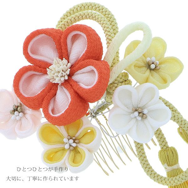 (卒業式応援75%SALE 2/19迄)【Prices down4】振袖髪飾り2点セット「オレンジ、イエローのつまみのお花、組紐、房飾り」つまみ細工髪飾り 振袖髪飾り 華やか髪飾り コーム お花髪飾り (1795)【メール便不可】ss2512wkk15