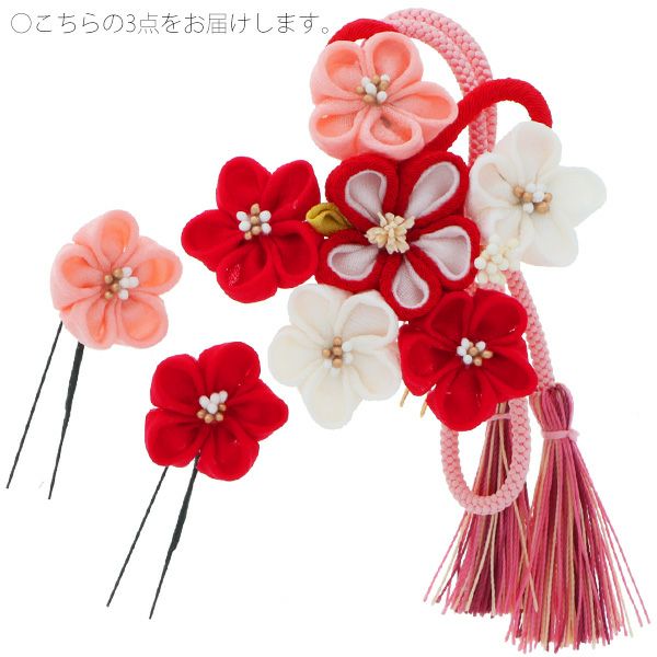 (卒業式応援75%SALE 2/19迄)振袖髪飾り3点セット「赤×ピンク、白 つまみのお花、房飾り」つまみ細工髪飾り 振袖髪飾り フラワーコーム 卒業式の袴にも お花髪飾り (1801)【メール便不可】<H>ss2512wkk10