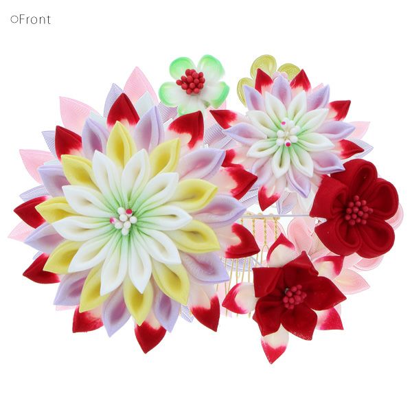 (卒業式応援75%SALE 2/19迄)【Prices down5】振袖髪飾り単品「赤×藤×黄色 つまみのお花」つまみ細工髪飾り 成人式、前撮り、結婚式の振袖に お花髪飾り 振袖髪飾り (17014)【メール便不可】ss2512wkk25