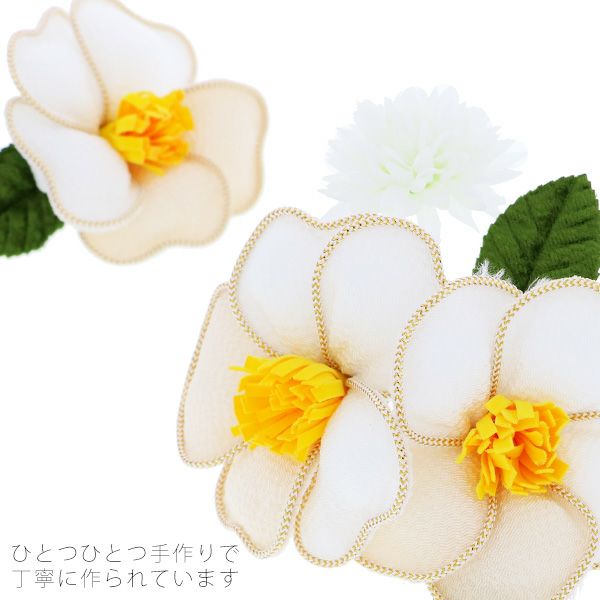 (卒業式応援75%SALE 2/19迄)振袖髪飾り2点セット「白色 ふっくら椿の髪飾り」お花髪飾り 成人式、前撮り、結婚式の振袖に 振袖髪飾り (2277)【メール便不可】<H>ss2512wkk10