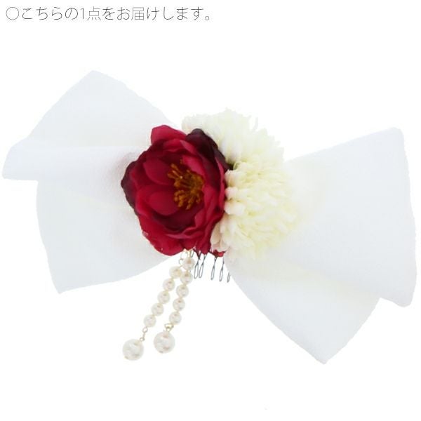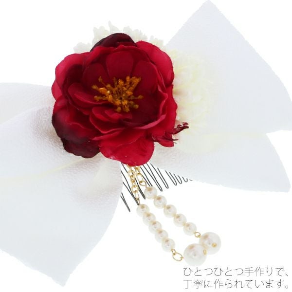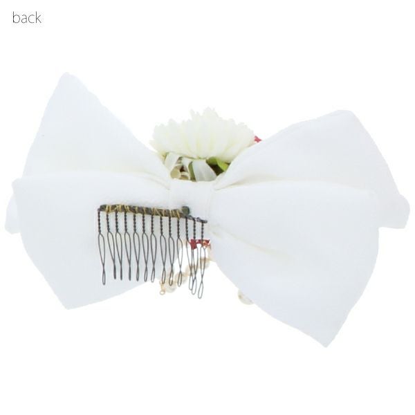 (卒業式応援75%SALE 2/19迄)【Prices down3】リボン髪飾り単品「白色リボン、お花とパールビーズ飾り」袴髪飾り 成人式、前撮り、結婚式の振袖に リボンコーム 振袖髪飾り (6492-1)【メール便不可】ss2512wkk25