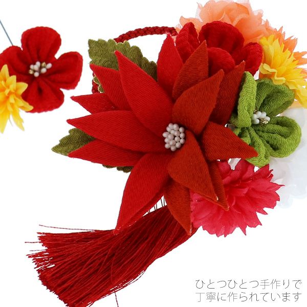 (卒業式応援75%SALE 2/19迄)【Prices down5】振袖髪飾り2点セット「赤色 お花、房飾り」お花髪飾り 成人式、前撮り、結婚式の振袖に 卒業式の袴にも つまみ細工 振袖髪飾り (4005)【メール便不可】ss2512wkk25