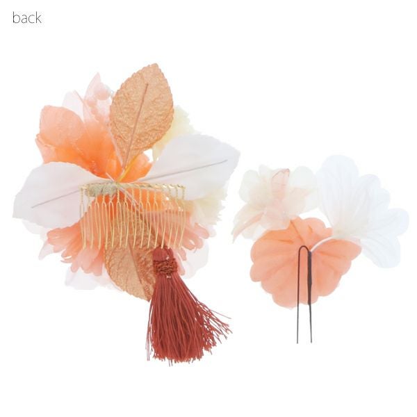 (卒業式応援75%SALE 2/19迄)【Prices down5】振袖髪飾り2点セット「オレンジ色のお花、パールビーズ」お花髪飾り 成人式、前撮り、結婚式の振袖に 振袖髪飾り (4022)【メール便不可】ss2512wkk25