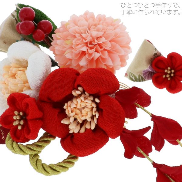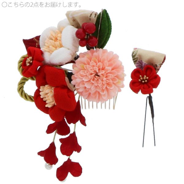 (卒業式応援75%SALE 2/19迄)【Prices down2】振袖髪飾り2点セット「赤白椿のお花、古布調リボン飾り」振袖髪飾り 成人式、前撮り、結婚式の振袖に 十三詣り、卒業式の袴にも 袴髪飾り (No.51785)【メール便不可】<H>ss2512wkk25