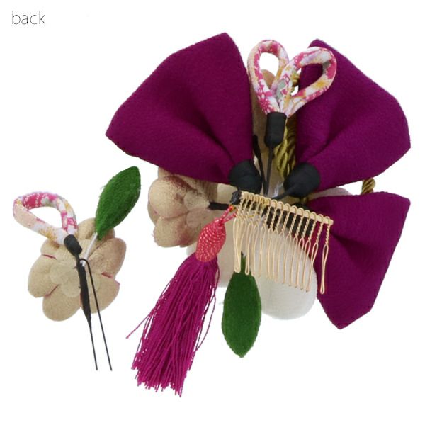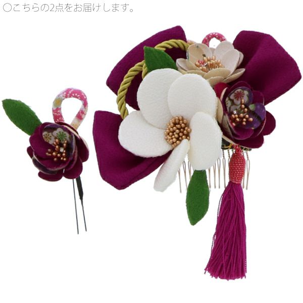 (卒業式応援75%SALE 2/19迄)【Prices down3】振袖髪飾り2点セット「赤紫色のリボン、白色のお花、房飾り」振袖髪飾り 成人式、前撮り、結婚式の振袖に 十三詣り、卒業式の袴にも 袴髪飾り (No.51211)【メール便不可】ss2512wkk30