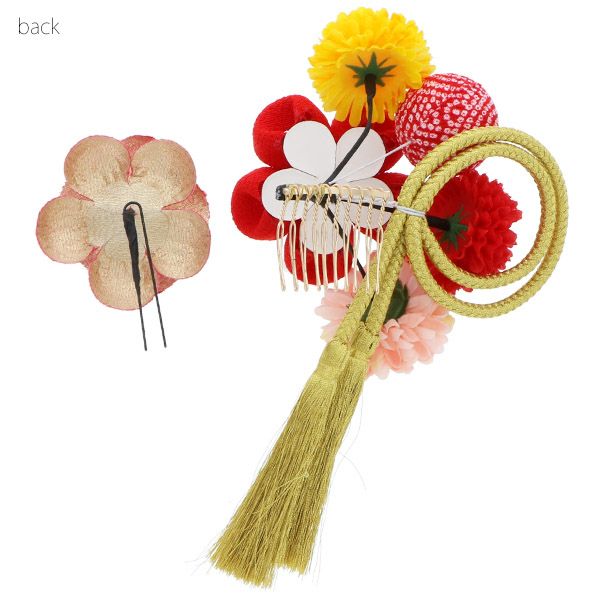 (卒業式応援75%SALE 2/19迄)【Prices down4】つまみ細工髪飾り2点セット「赤色 つまみのお花、金色房飾り」髪飾り 成人式、結婚式 振袖髪飾り お花髪飾り 房飾り No.52195 赤【メール便不可】ss2512wkk15