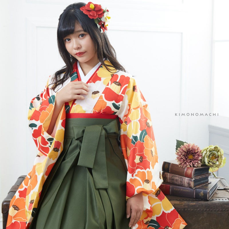 本物みたいな椿のお花が繊細で華やかな雰囲気です。成人式の振袖にはもちろん、卒業式の袴にもいいですね。