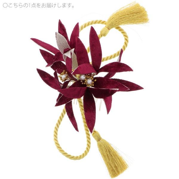 【Prices down3】振袖、袴髪飾り「エンジ色のお花と金色の組紐、房飾り」お花髪飾り ベロア 振袖髪飾り 成人式、結婚式 ベルベット (4070)【メール便不可】<H>ss2512wkk40