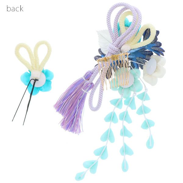 (卒業式応援75%SALE 2/19迄)【Prices down2】つまみ細工、お花髪飾り2点セット「ブルー つまみのお花、房飾り」髪飾り 成人式、結婚式 振袖髪飾り お花髪飾り 房飾り No.1872【メール便不可】<H>ss2512wkk35