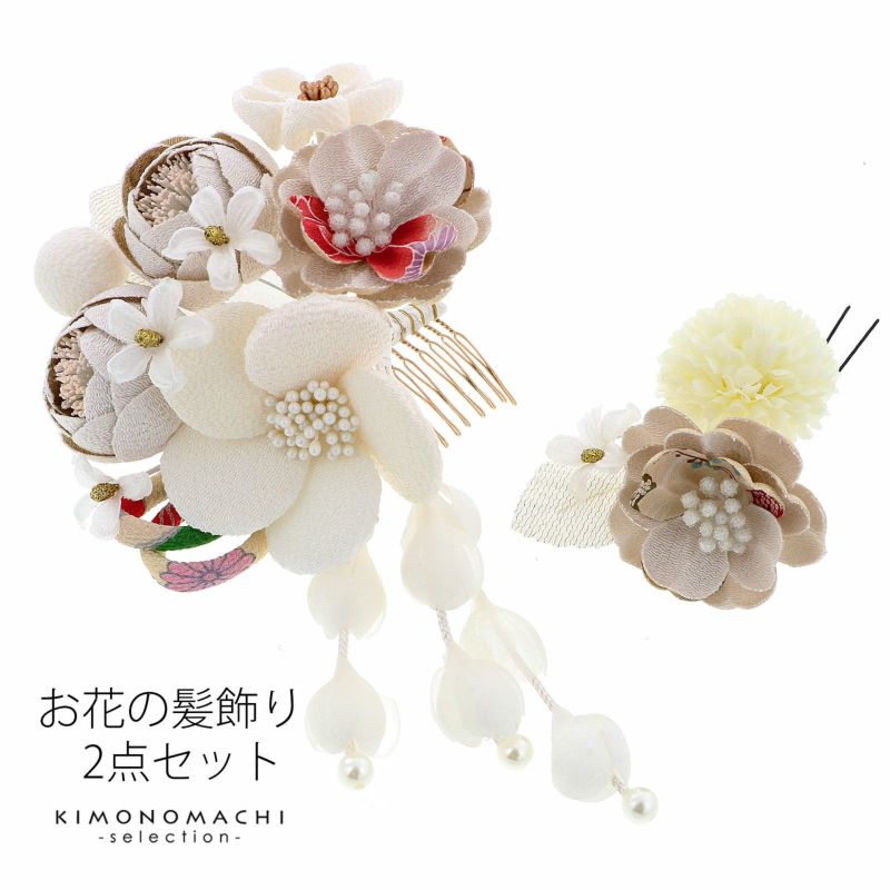 (卒業式応援最大70%OFF 2/5迄)【Prices down2】髪飾り コームとUピン 2点セット 「象牙色 (No.50591白)」 振袖用髪飾り お花髪飾り 成人式 卒業式 結婚式 着物 日本製 【メール便不可】<H>ss2512wkk25
