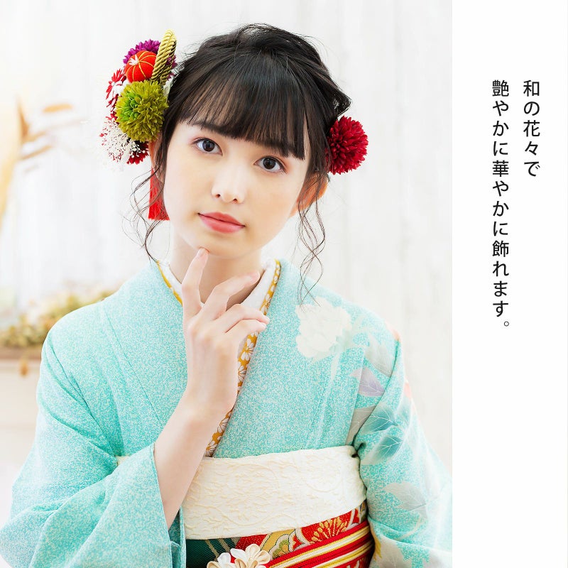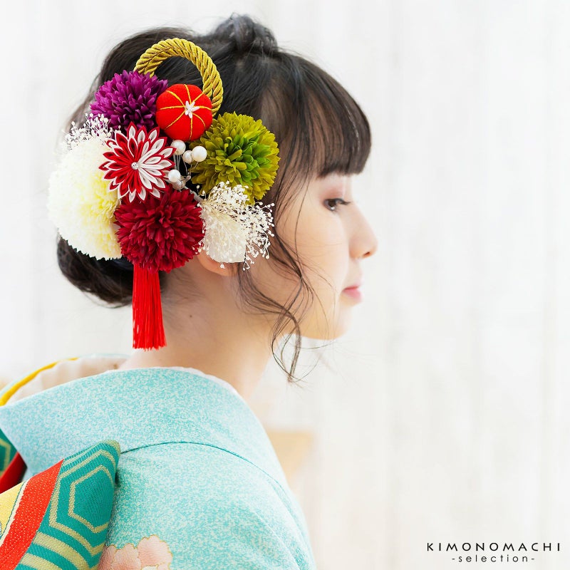 (卒業式応援75%SALE 2/19迄)髪飾り 成人式 花髪飾り コーム Uピン 2点セット 「マムとタッセル レッド No.53783」 振袖用髪飾り お花髪飾り つまみ細工 成人式 卒業式 結婚式 着物 日本製 【メール便不可】<H>ss2512wkk10