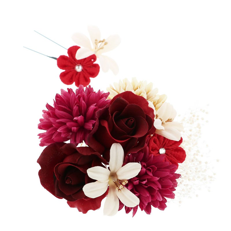 (卒業式応援75%SALE 2/19迄)髪飾り 成人式 花髪飾り コーム Uピン 2点セット 「ローズとリリー クラレット No.55029」 振袖用髪飾り お花髪飾り つまみ細工 成人式 卒業式 結婚式 着物 日本製 【メール便不可】<H>ss2512wkk10