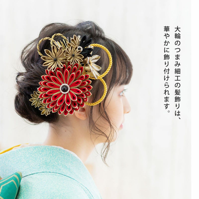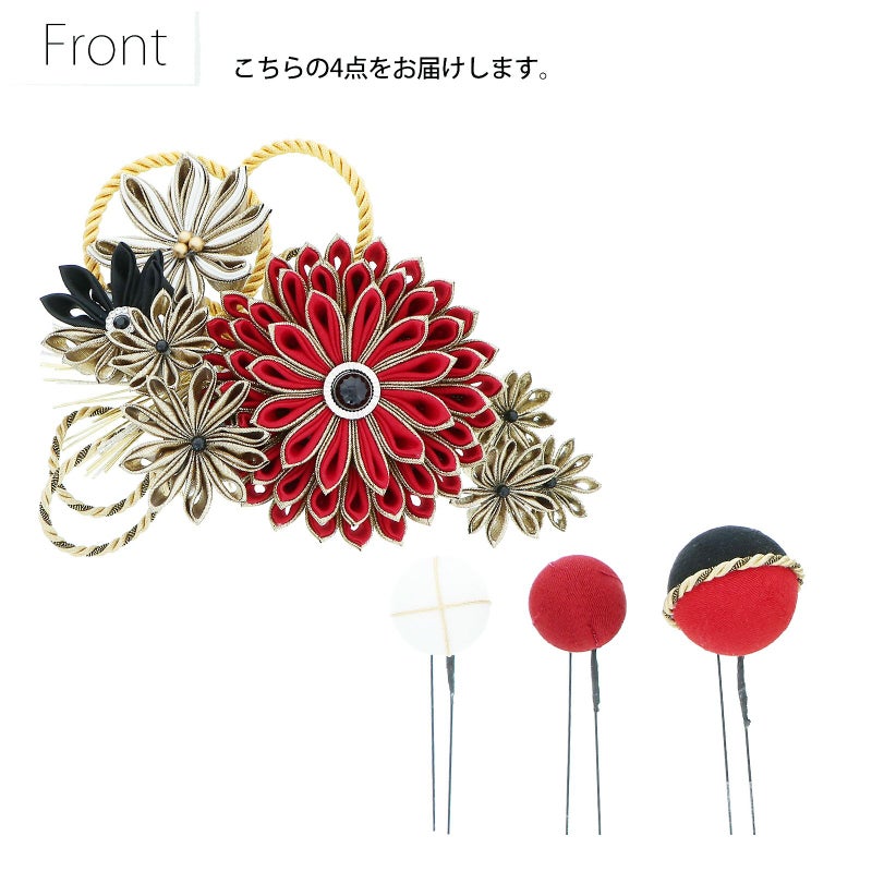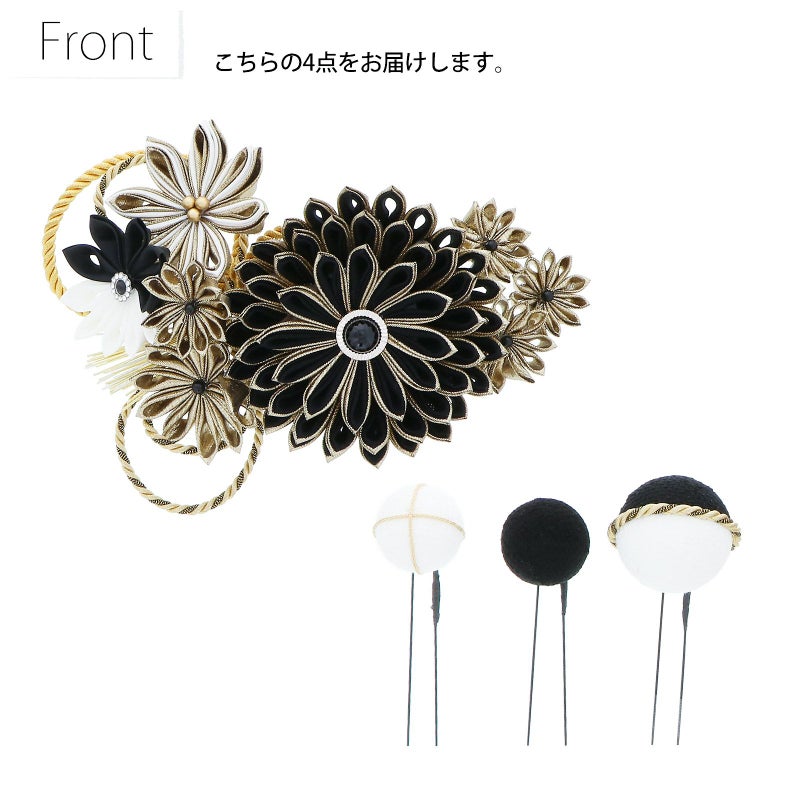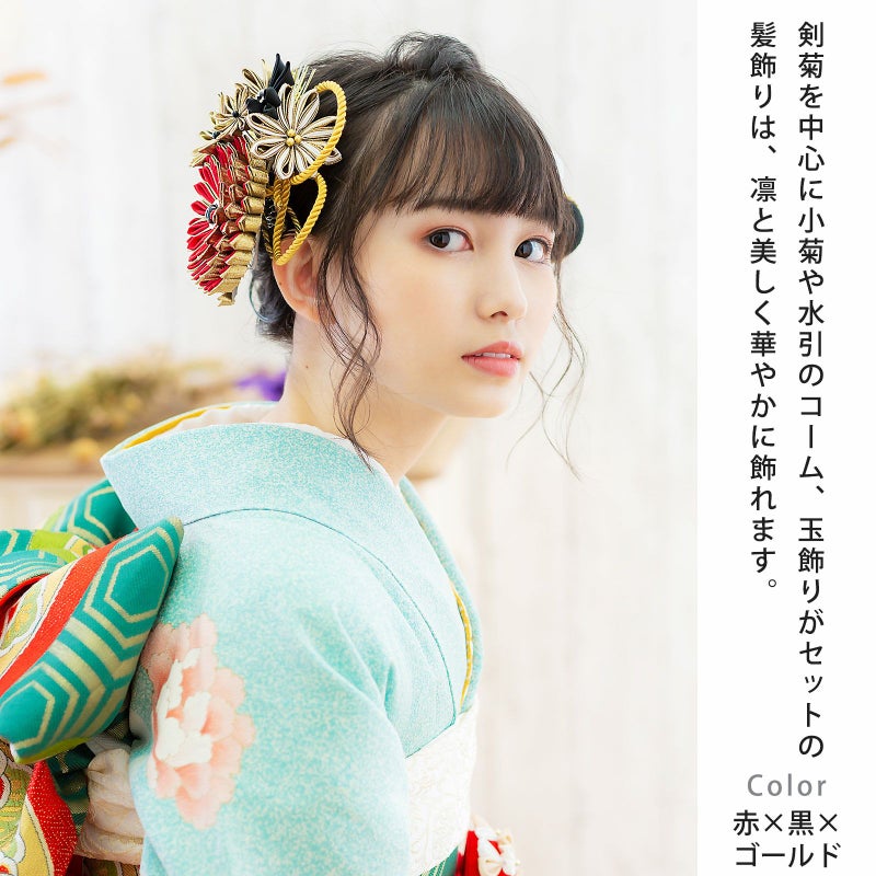 (卒業式応援75%SALE 2/19迄)髪飾り 成人式 花髪飾り コーム Uピン 4点セット 「剣菊と組紐、玉飾り 赤×黒×ゴールド・黒×白×ゴールド No.54929」 振袖用髪飾り お花髪飾り つまみ細工 成人式 卒業式 結婚式 着物 日本製 【メール便不可】<H>