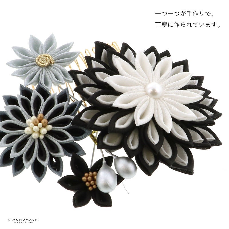 コーム 髪飾り 単品「白×黒 モノトーン剣菊 JK-1」JAPAN STYLE ジャパンスタイル 大人用・子供用 女性 女児 女の子 レディース ヘアアクセサリー 着物、和装、振袖、七五三【メール便不可】ss2506kkd10