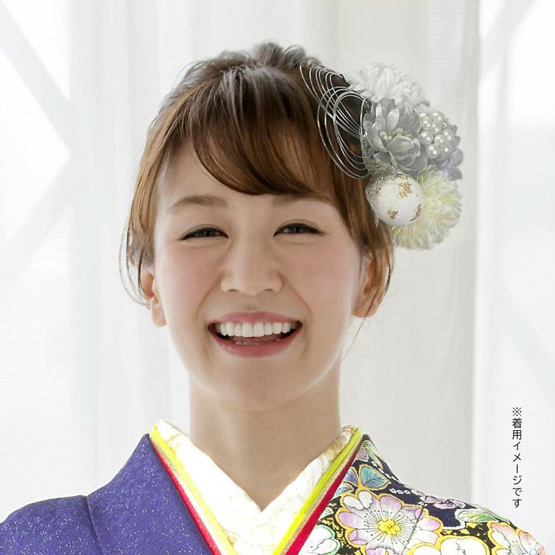 (卒業式応援75%SALE 2/19迄)髪飾り 成人式 卒業式 2点セット「白×シルバー フラワー」水引 コーム Uピン 振袖用髪飾り お花髪飾り 結婚式 前撮り 後撮り 着物【メール便不可】