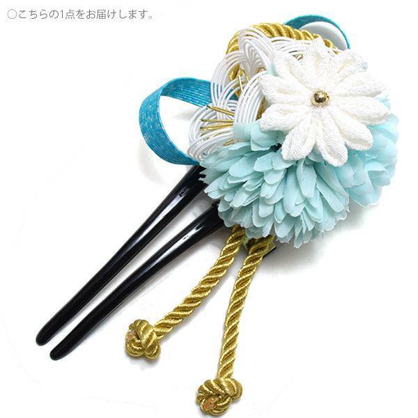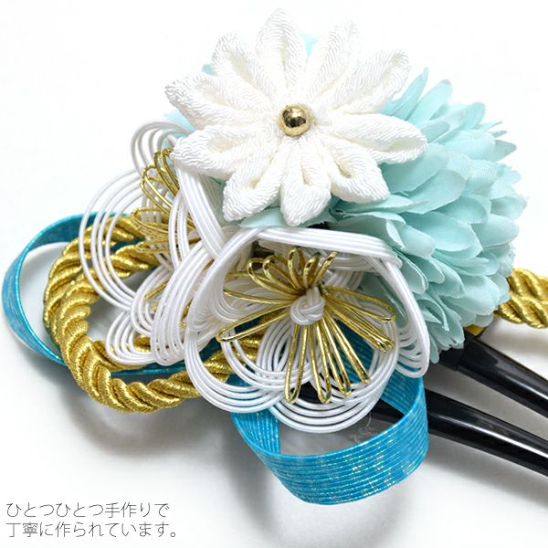 (卒業式応援75%SALE 2/19迄)【Prices down2】お花髪飾り「水色×白色のお花と水引き飾り」かんざし お花髪飾り フラワーかんざし 卒業式、成人式、振袖 HK-40【メール便不可】<H>ss2512wkk35