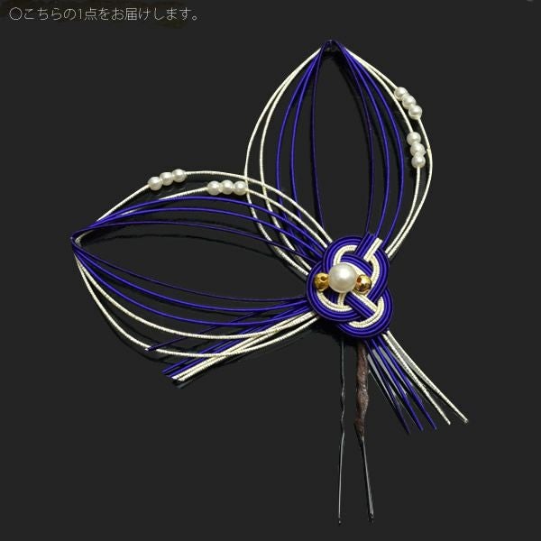 (卒業式応援75%SALE 2/19迄)水引き髪飾り「ネイビーブルー×シルバー」Uピン髪飾り 成人式、卒業式に ヘアアレンジ ポイント髪飾り UP-23【メール便不可】<H>