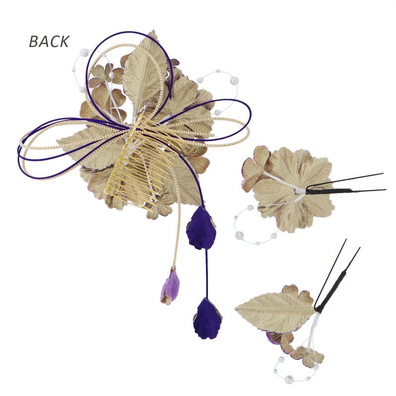 お花のコーム、Uピンの髪飾り3点セットです。振袖などの華やかなお着物に合わせて、成人式、結婚式などの晴れやかな席に。
