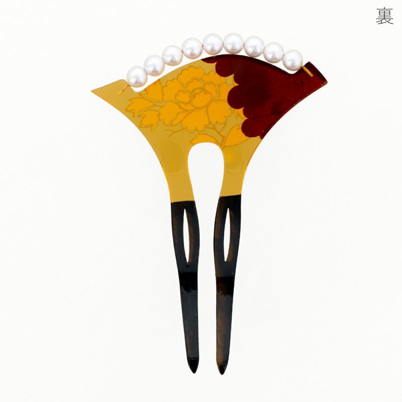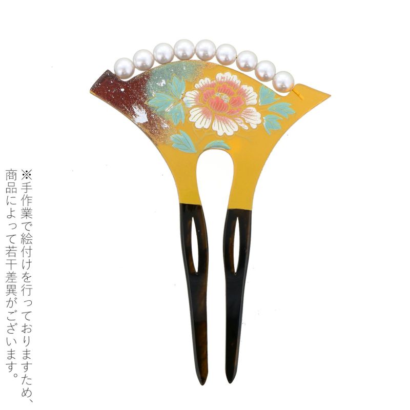 かんざし バチ型 「べっ甲調 桃色牡丹 #756」 銀杏型 高級 簪 礼装用 フォーマル着物 和装 留袖 黒留袖 訪問着 色無地 結婚式 パーティー 【メール便不可】<H>