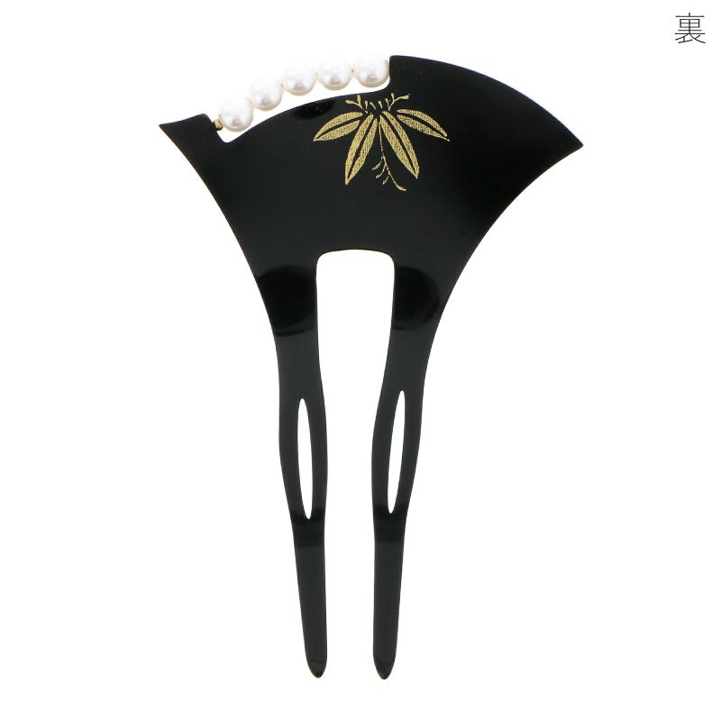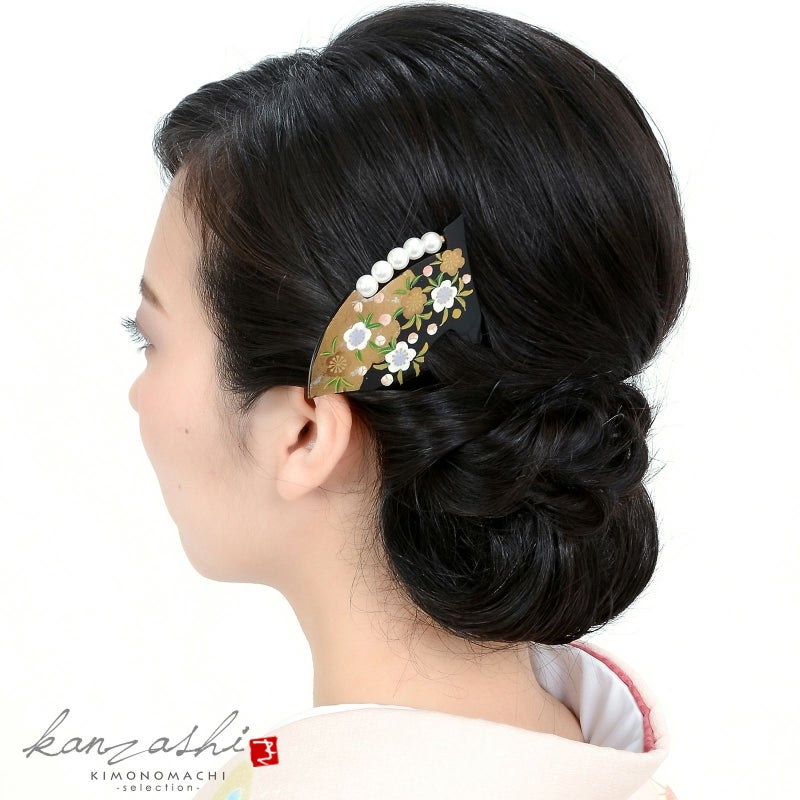 かんざし バチ型 「黒地 パール 梅 #797」 銀杏型 高級 簪 礼装用 フォーマル着物 和装 留袖 黒留袖 訪問着 色無地 結婚式 パーティー 【メール便不可】<H>