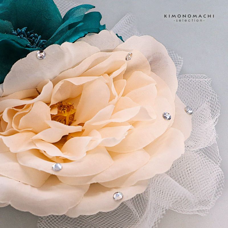 【Prices down5】髪飾り 成人式 卒業式 「ターコイズ×ピンクホワイト 花とレース」 振袖 お花髪飾り 前撮り ヘアアクセサリー【メール便不可】ss2512wkk25
