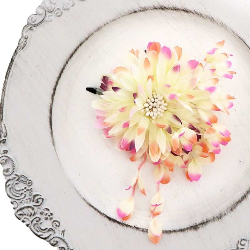 爽やかな色合いのお花に下がり飾りがかわいいお花髪飾りです。