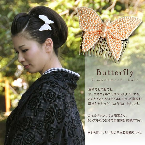 【Prices down2】蝶々のパールビーズ髪飾り!夏用簪 浴衣や着物髪飾り【 髪飾り 】【 パール髪飾り 】【 浴衣用髪飾り 】【メール便不可】ss2506wkk10