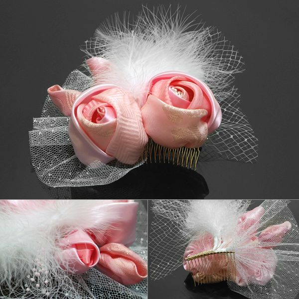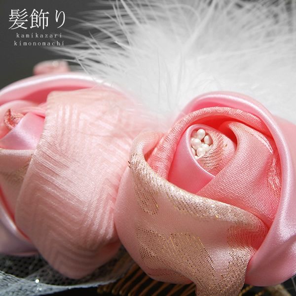 (卒業式応援75%SALE 2/19迄)【Prices down2】お花の髪飾り「ピンク 薔薇」ふわふわ羽根とレースが華やか(4512)[ 振袖 ] [ 成人式 ]振袖 成人式 前撮り 結婚式 髪飾り【メール便不可】ss2512wkk35