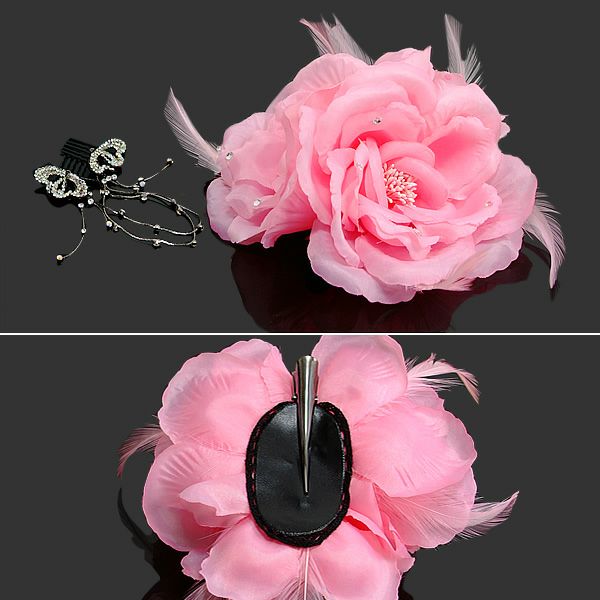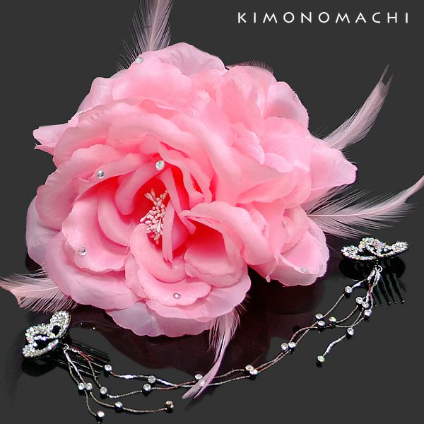 【Prices down2】振袖 お花髪飾り「ピンクのお花、ラインストーンコーム付」前撮り 振袖髪飾り 成人式 ヘアアクセサリー 【メール便不可】ss2403wkk10