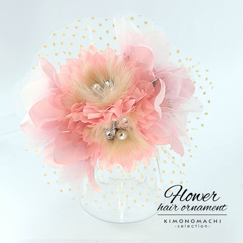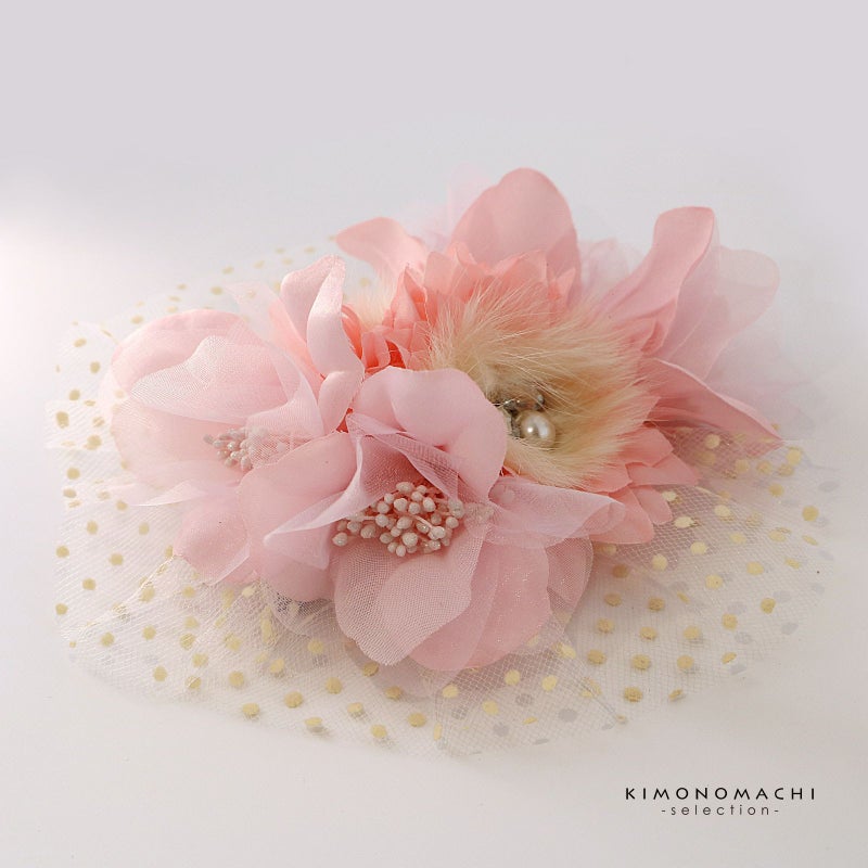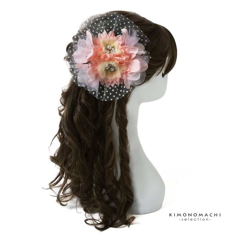 【Prices down5】髪飾り 成人式 卒業式 「ピンク お花の水玉レース」 振袖 お花髪飾り 前撮り ヘアアクセサリー【メール便不可】ss2512wkk25