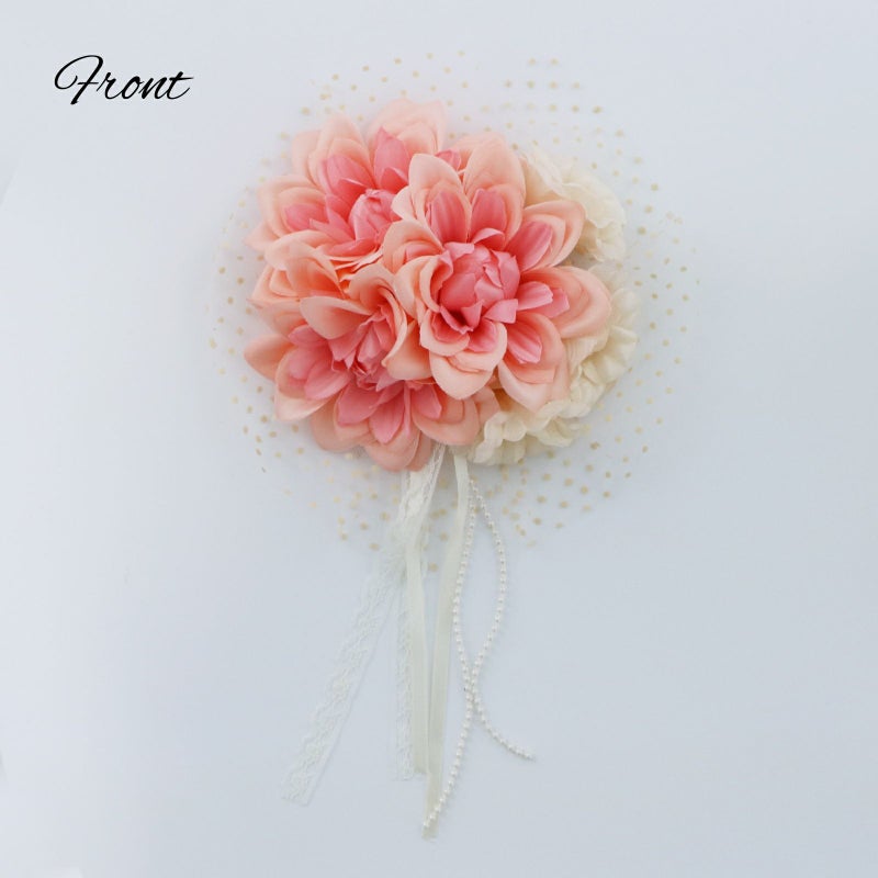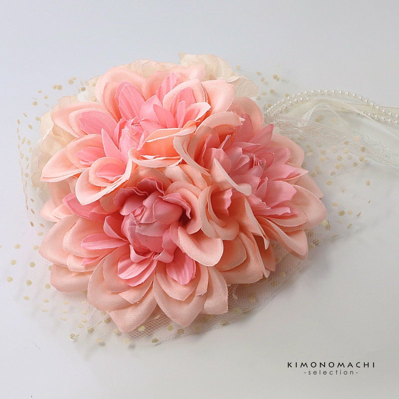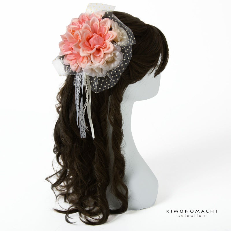 【Prices down5】髪飾り 成人式 卒業式 「ピンク×白色 花とレース、レースリボン」 振袖 お花髪飾り 前撮り ヘアアクセサリー【メール便不可】ss2512wkk25