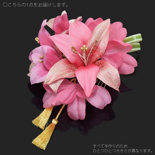 【Prices down3】振袖髪飾り「ピンク 百合のお花」振袖 成人式 フラワーコーム レトロ お花髪飾り (3571)【メール便不可】ss2506wkk10