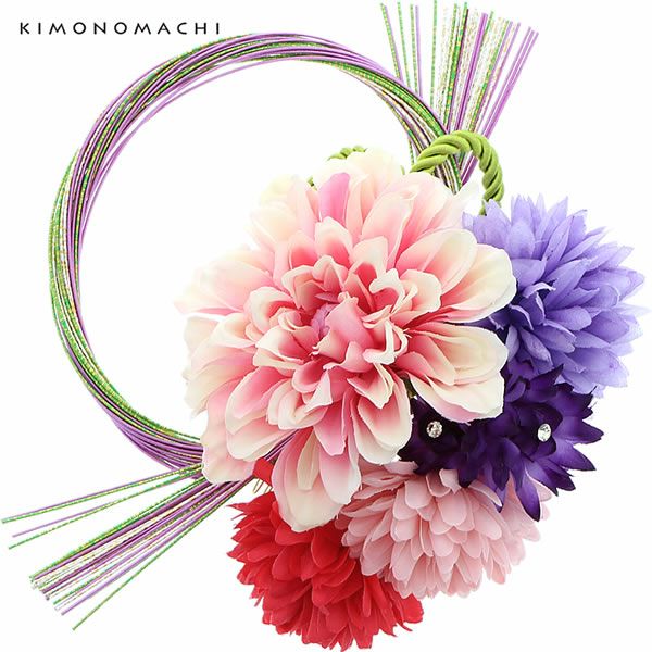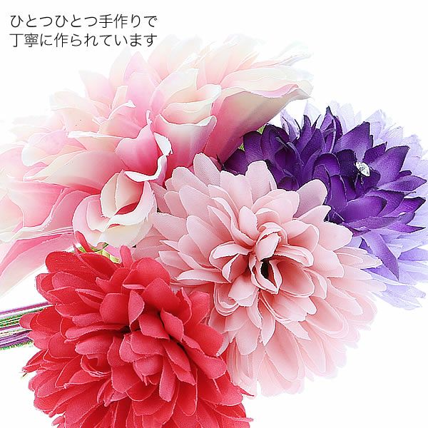 (卒業式応援75%SALE 2/19迄)【Prices down3】振袖髪飾り「ピンク、パープル、赤色のお花、水引き」お花髪飾り コーム髪飾り 華やか 水引き飾り 成人式の振袖、卒業式の袴にも (HA-382)【メール便不可】ss2512wkk35