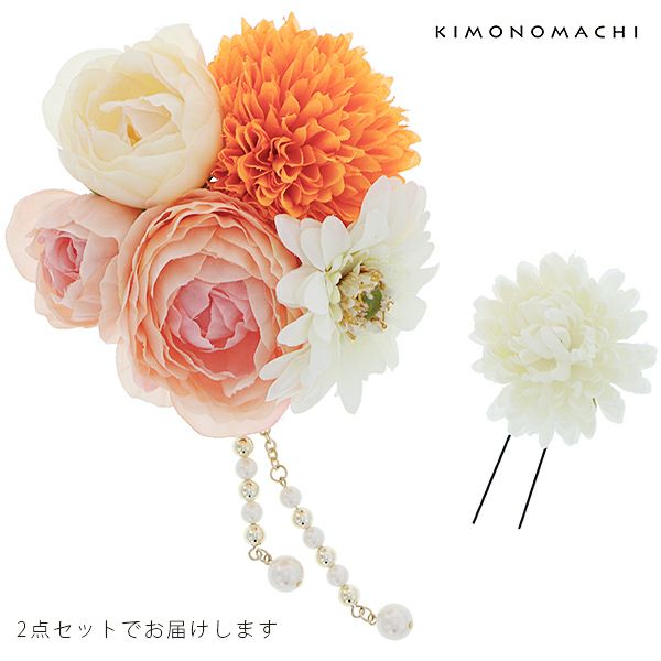 (卒業式応援75%SALE 2/19迄)【Prices down2】振袖髪飾り2点セット「オレンジ、サーモンピンク、白色のお花、パールビーズ」お花髪飾り コーム髪飾り 華やか 成人式の振袖、卒業式の袴にも (6405-2)【メール便不可】<H>ss2512wkk35
